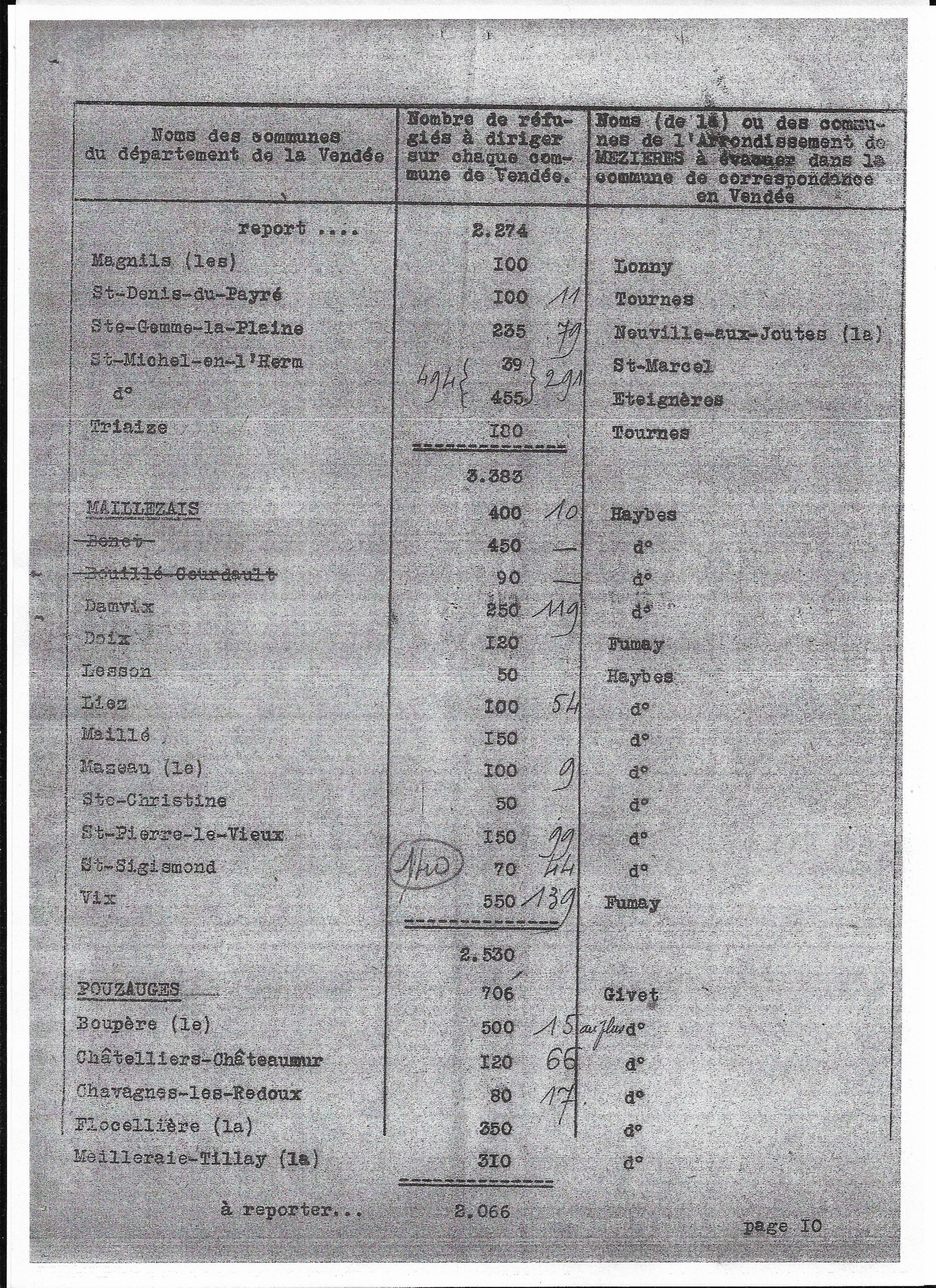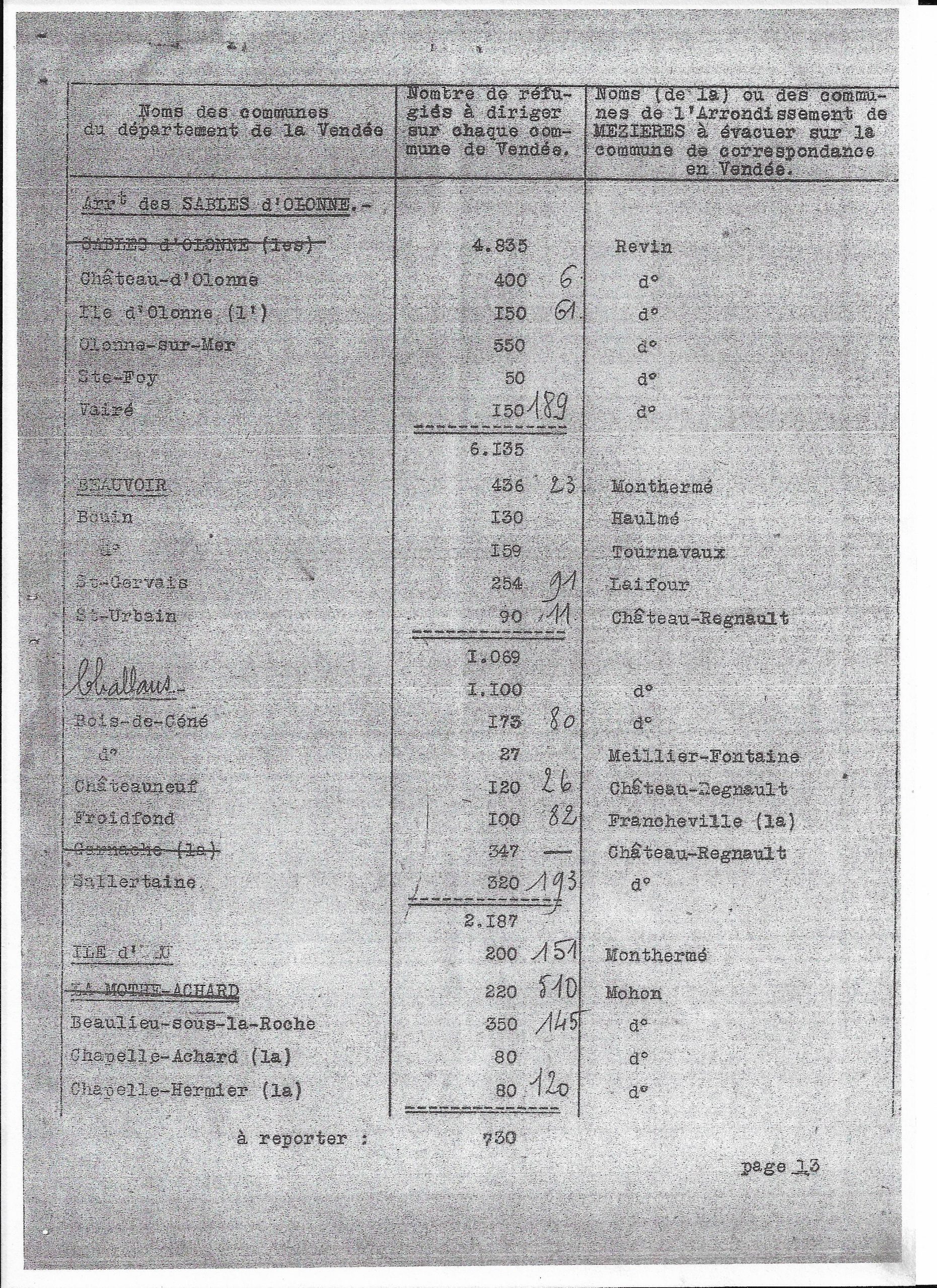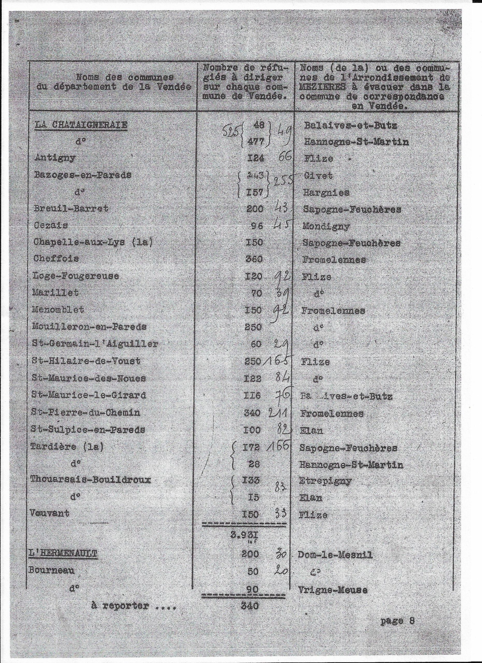 Plan de répartition des communes de l’arrondissement de Mezières à évacuer sur le département de la Vendée