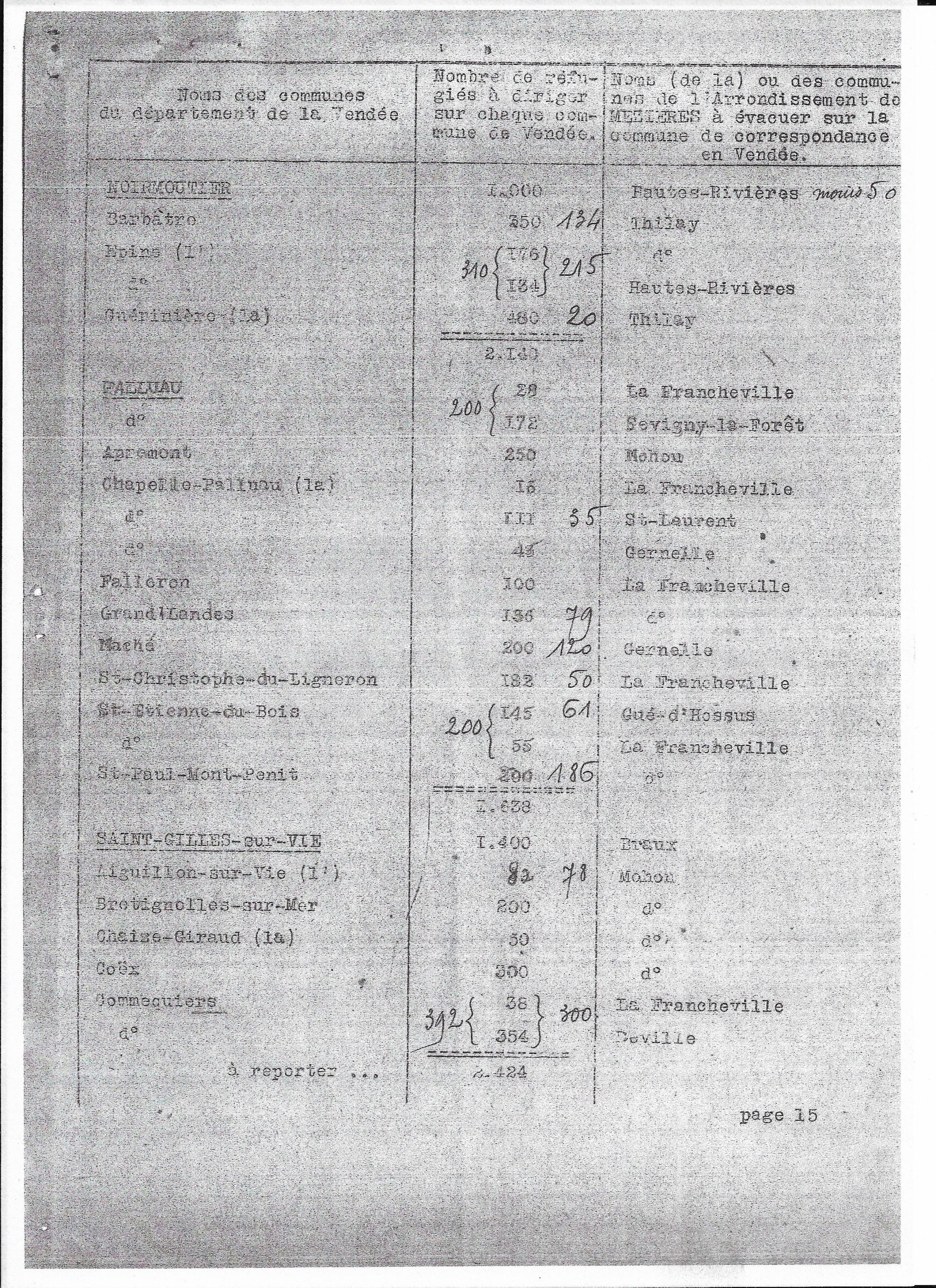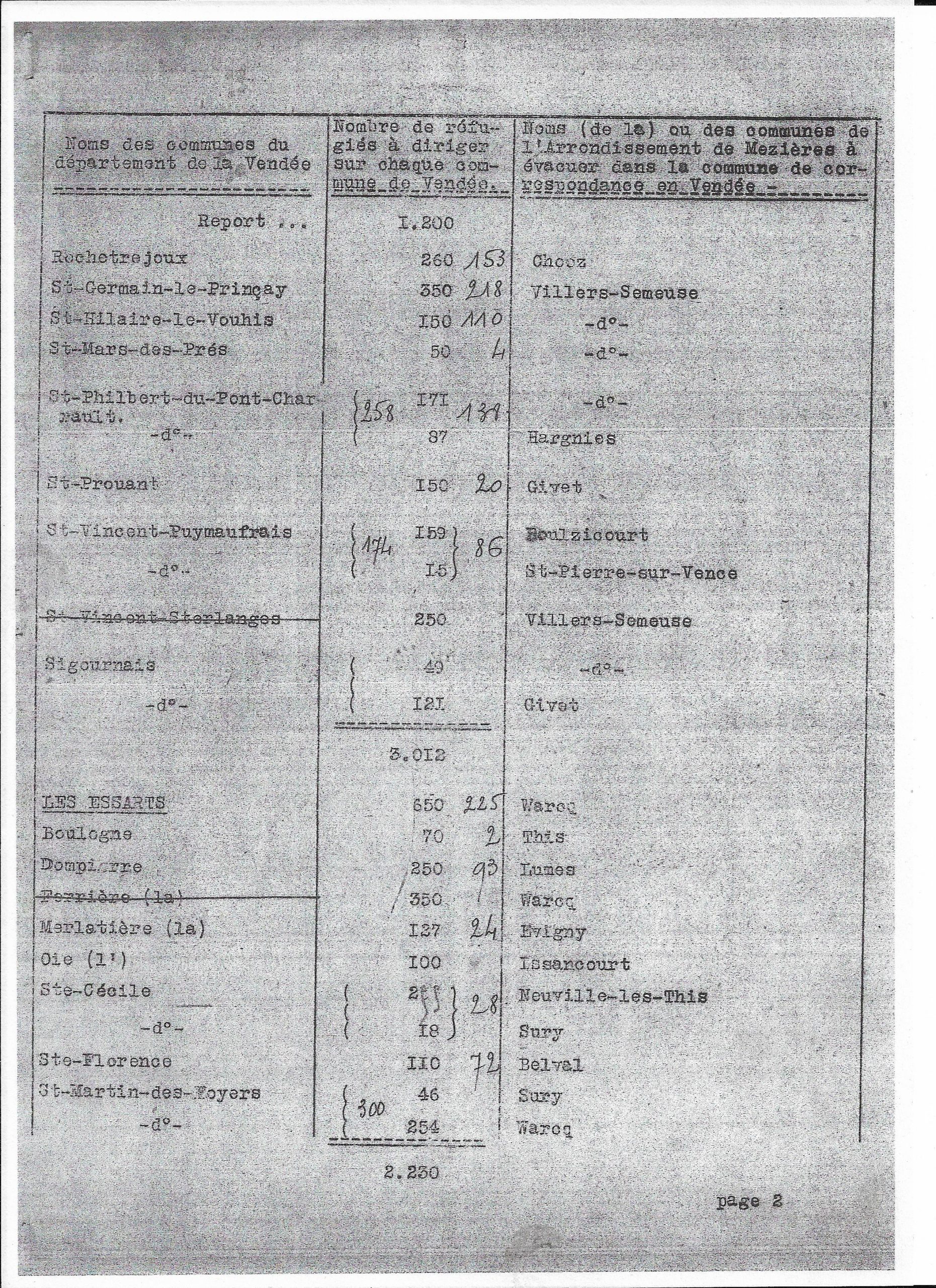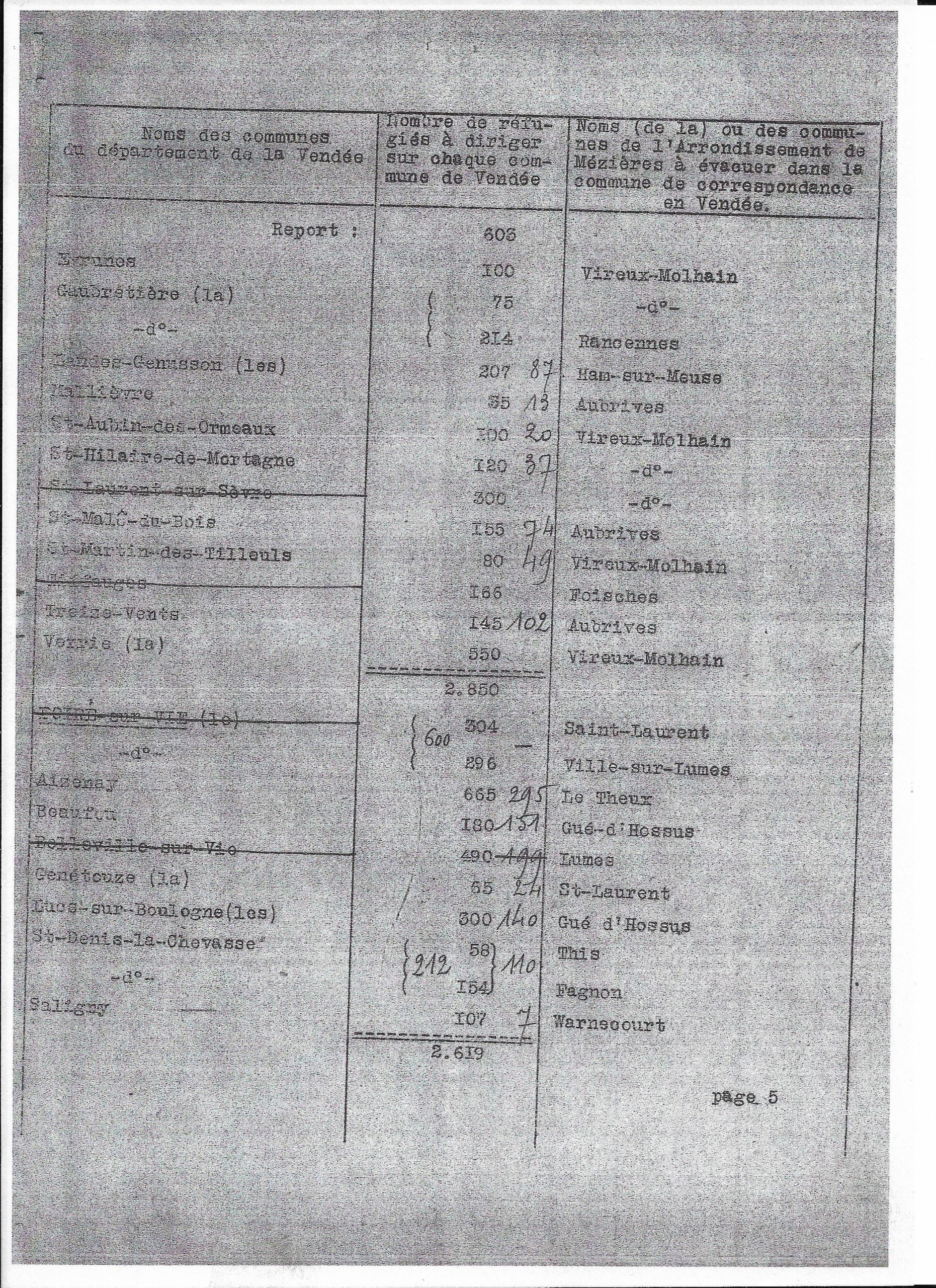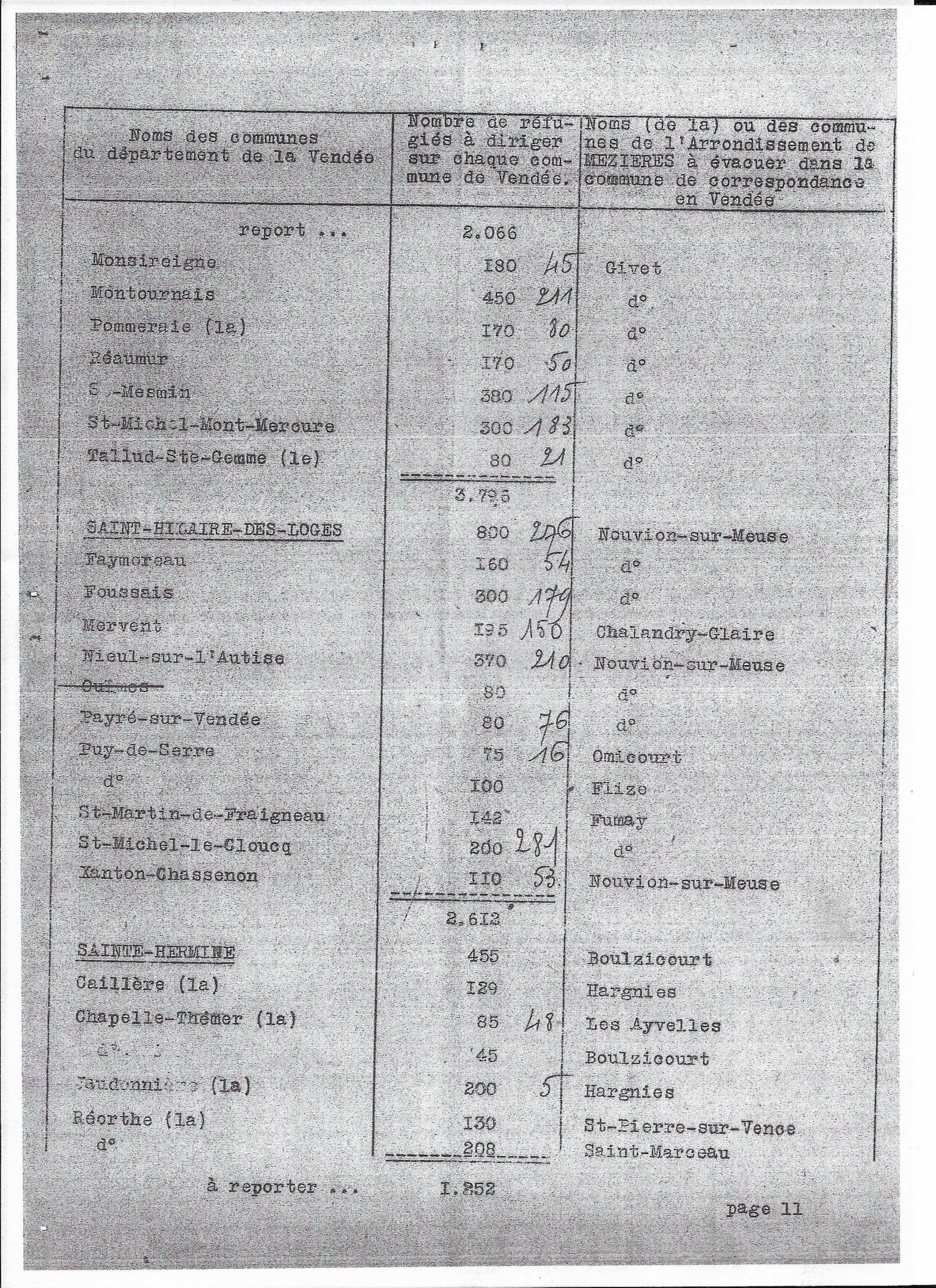 Plan de répartition des communes de l’arrondissement de Mezières à évacuer sur le département de la Vendée